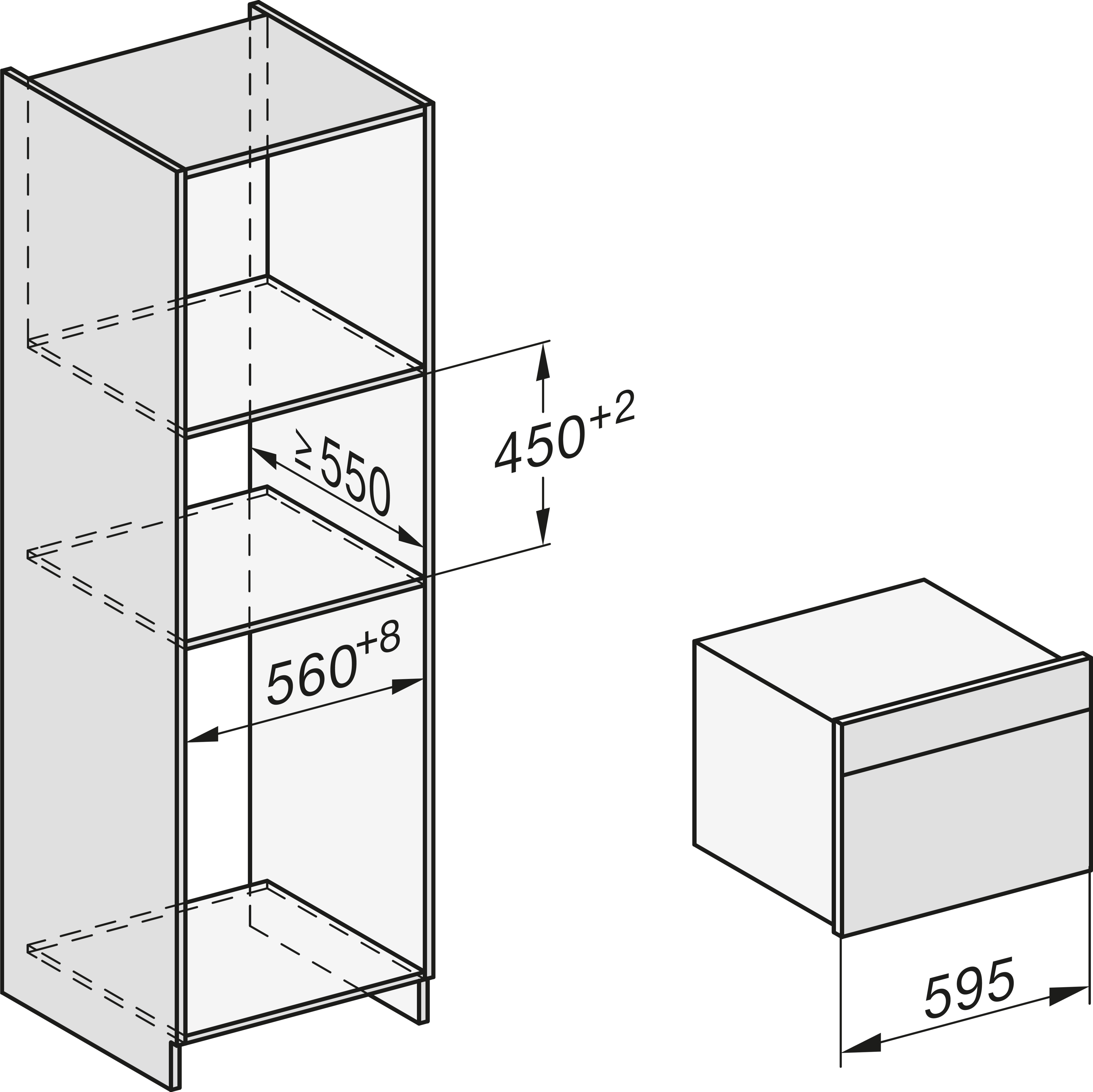 Габариты ниши (Ш х В): 560-568 х 448-452 мм