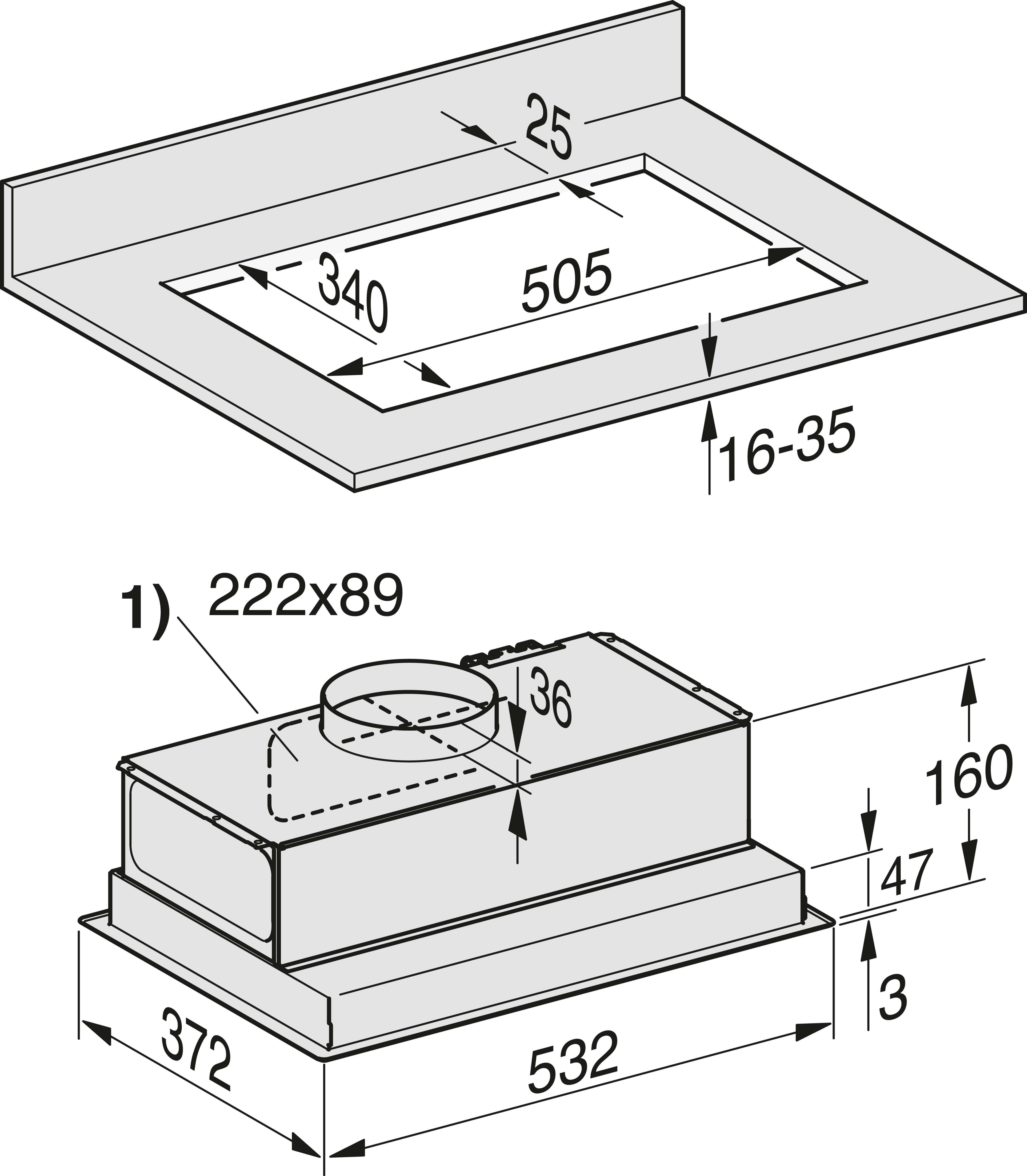 У кухонных вытяжек, для эксплуатации которых используется внешний вентилятор, всасывающий вентилятор Miele устанавливается снаружи помещения в удобном для вас месте.