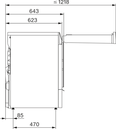 Глубина прибора с открытой дверцей, см