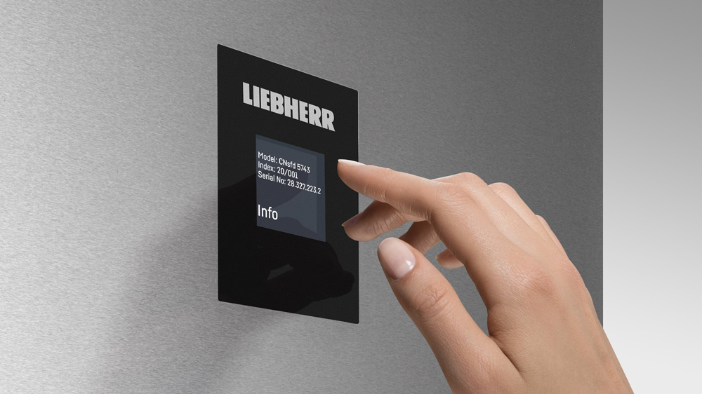 В современных холодильниках Liebherr для удобства потребителей в меню электронного управления можно найти сведения о своём устройстве - полное наименовании модели, серийный и сервисный номера. Эта информация дублируется с заводской табличной устройства, которая обычно располагается внутри морозильной камеры, но её расположение неудобно для многих потребителей. Обычно, в течение нескольких недель после покупки потребители уже забывают наименование модели своего холодильника. Если возникают какие либо вопросы по работе устройства или требуется обратиться в сервисную службу - эти данные обязательно потребуются. Оперативно найти нужные сведения можно через соответствующее меню - эта информация никуда не потеряется.